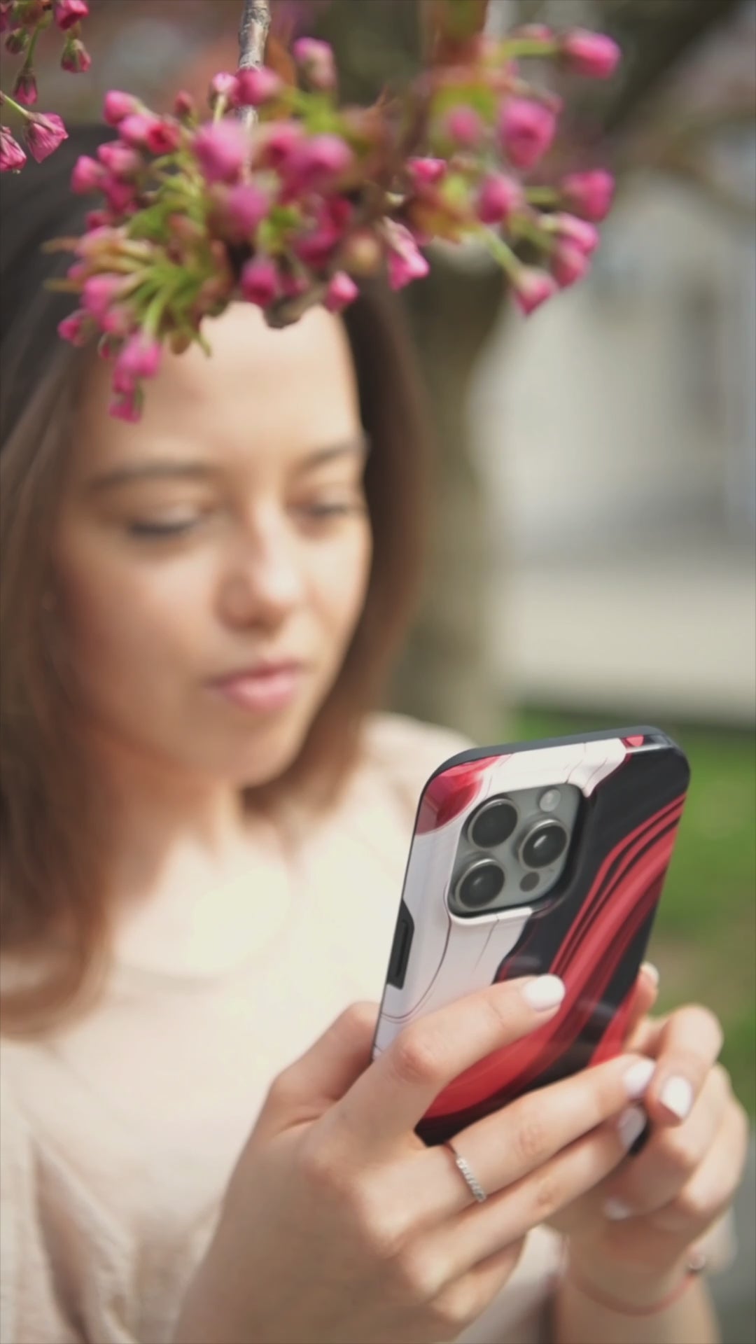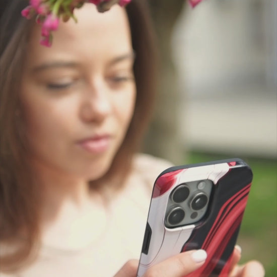 Drąsus, bet elegantiškas – šis dėklas skirtas tiems, kurie nori išsiskirti subtiliai. Degančiai raudoni ir juodi raštai primena šilkinį dūmų šokį, suteikiantį tavo iPhone išskirtinį charakterį.